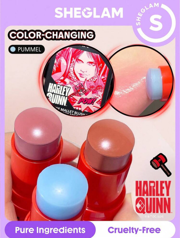 Harley Quinn X SHEGLAM Mischief Mallet Blush Stick - رنگ Pummel 💥💖