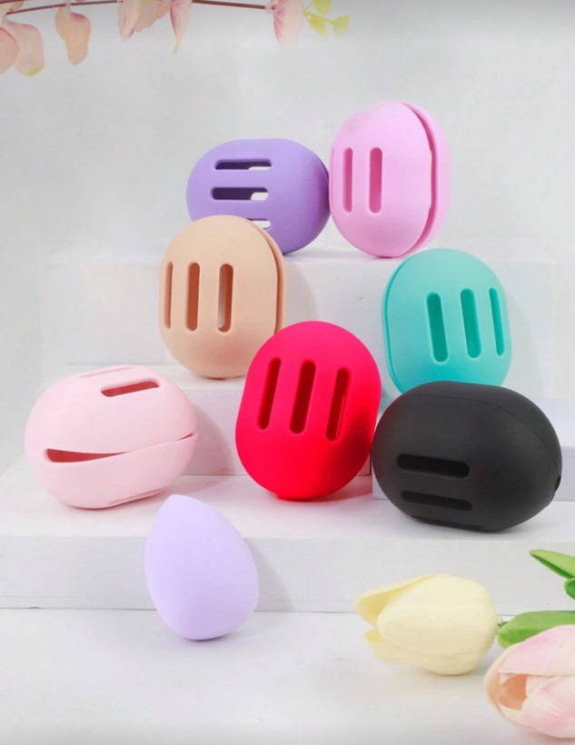 محافظ سیلیکونی اسپنج آرایشی – جعبه نگهداری تخممرغی با درپوش ضد گرد و غبار برای سفر