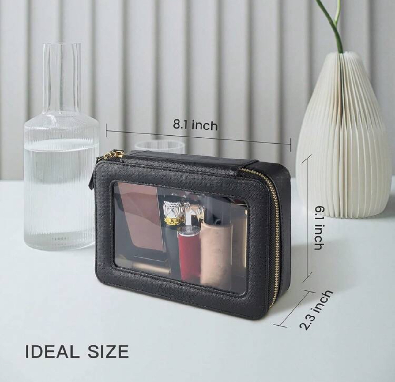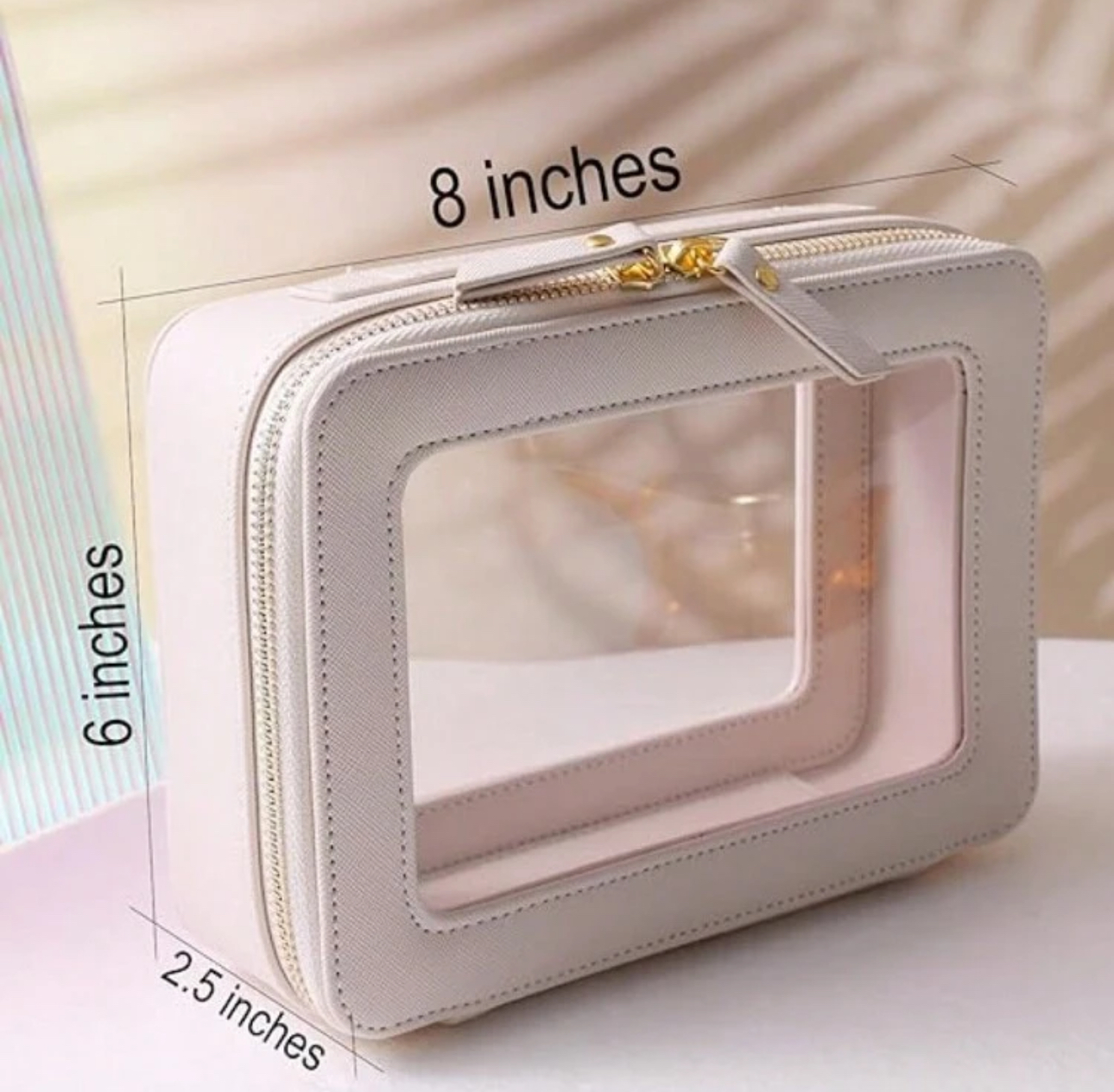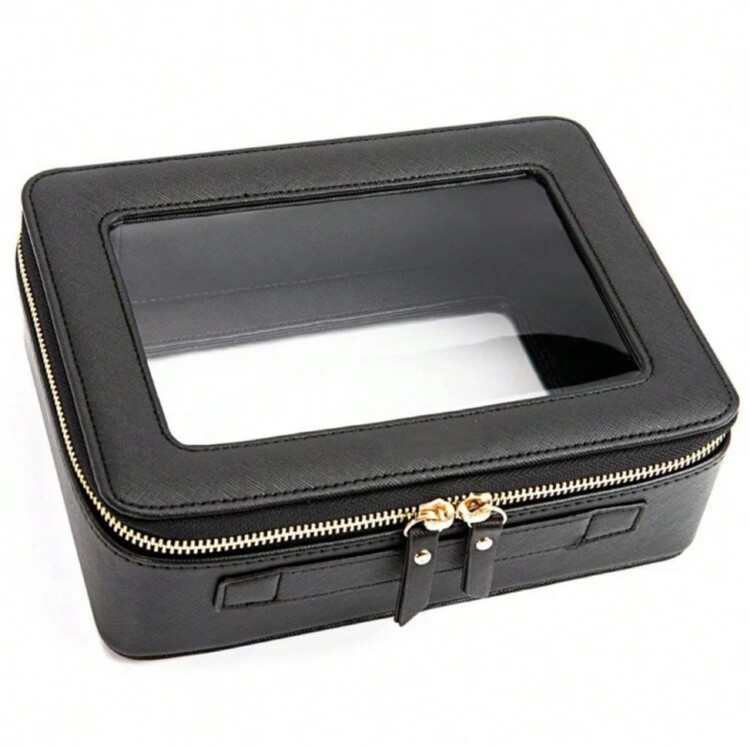کیف آرایشی شفاف شیک با زیپ و دسته