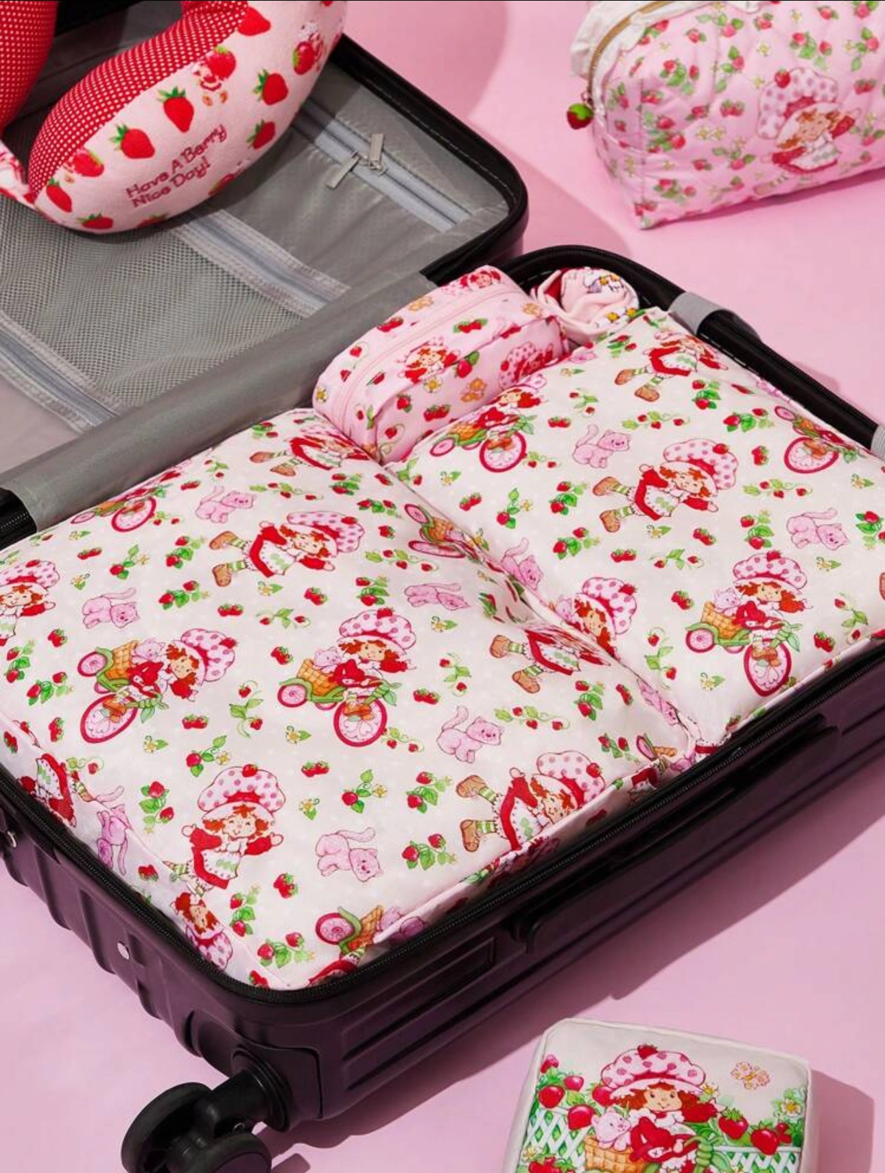 - مجموعه ۲تایی کیفهای سفر با طراحی کارتونی و توتفرنگی