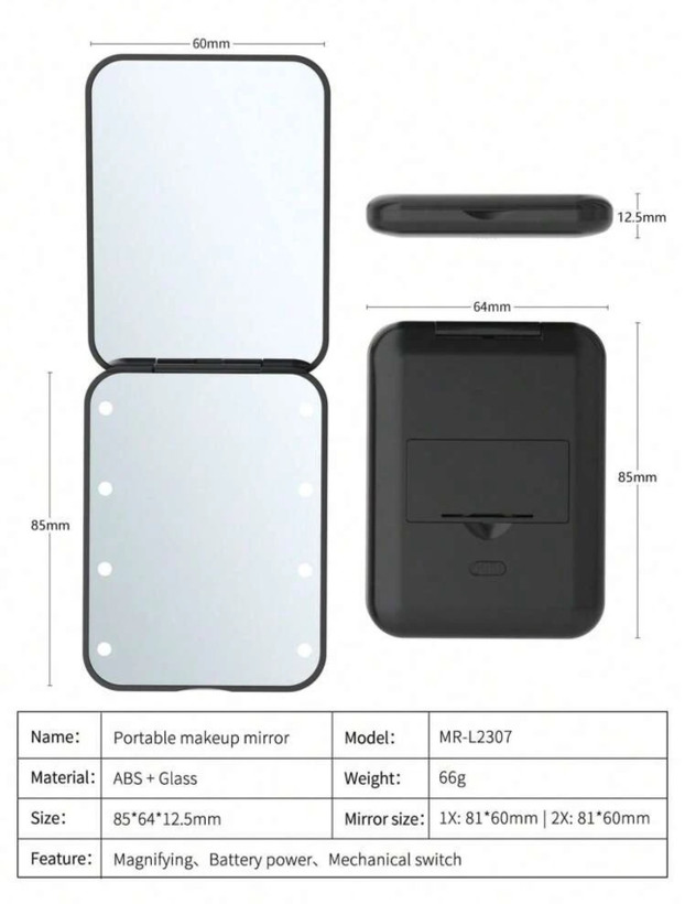 - نوع محصول: آینه جیبی آرایشی با نور LED