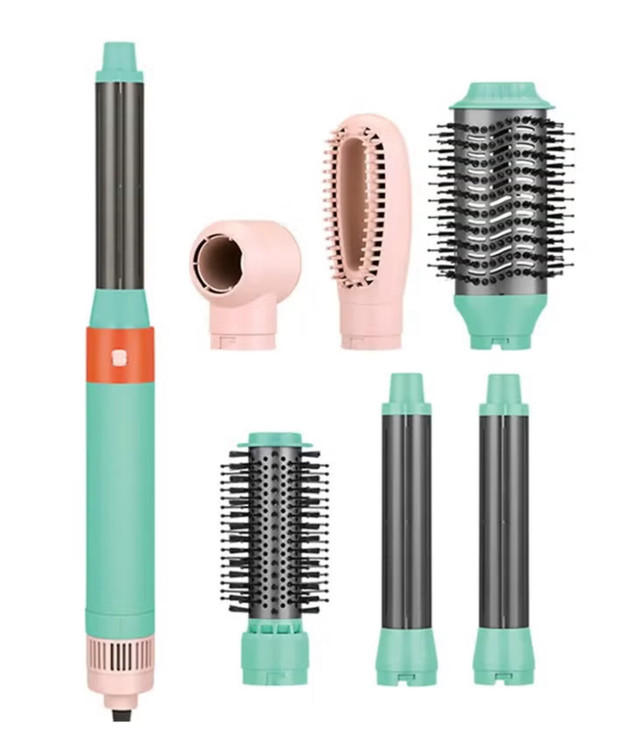 - 6 کاره: دارای 6 سری مختلف برای حالتدهی موها شامل صافکننده، فرکننده، برس حرارتی، شانه، سشوار و برس گرد