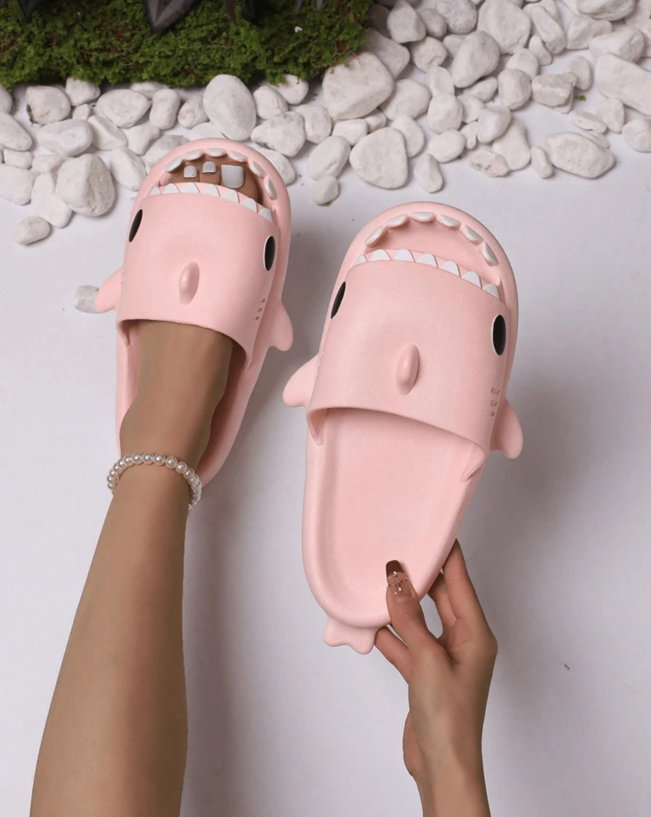 نام محصول: دمپایی طرح کوسه مخصوص زوجها – کفی نرم و ضد لغزش، طراحی بامزه با پنجه باز