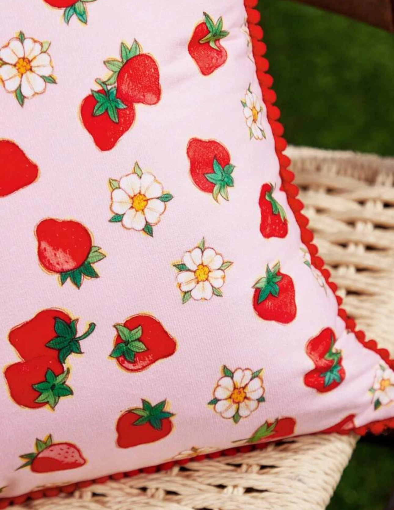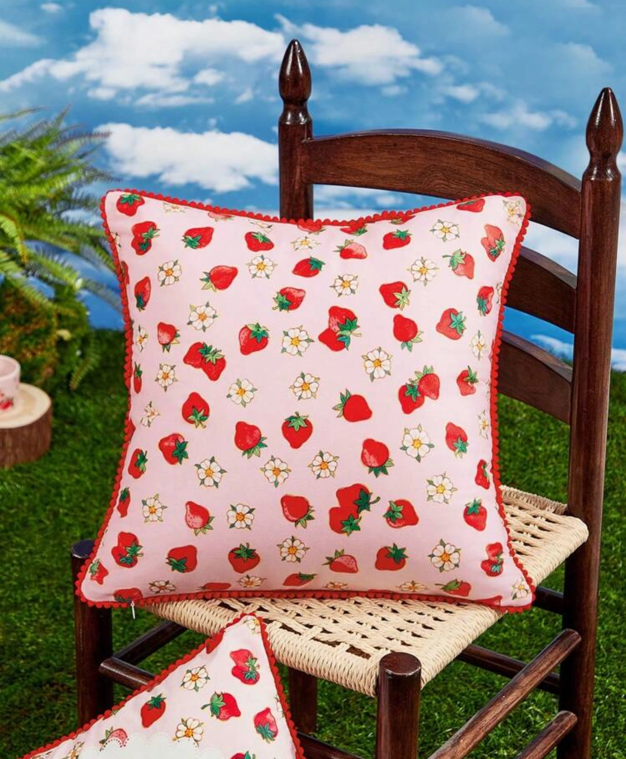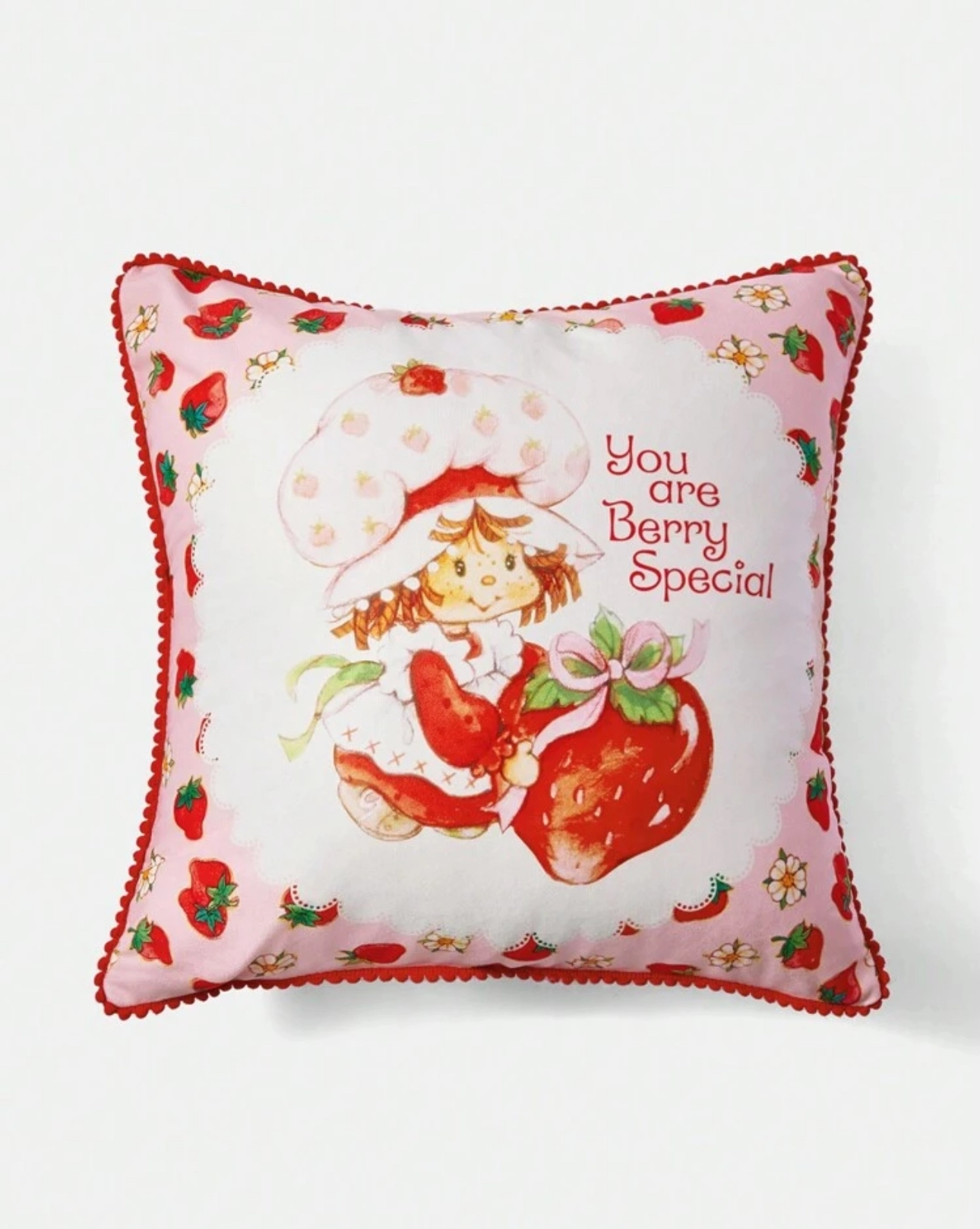 کاور کوسن مربعی با لبههای طرحدار | طرح کارتونی و توتفرنگی | همکاری ویژه Strawberry Shortcake X SHEIN